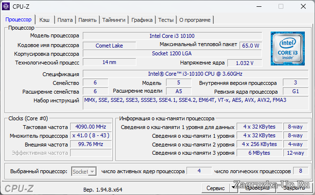 Название и номер процессора, кодовое имя, процесс, упаковка, уровни кэша.